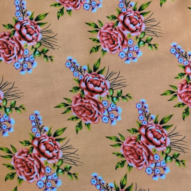 Beige Brown Roses Linen — 63″