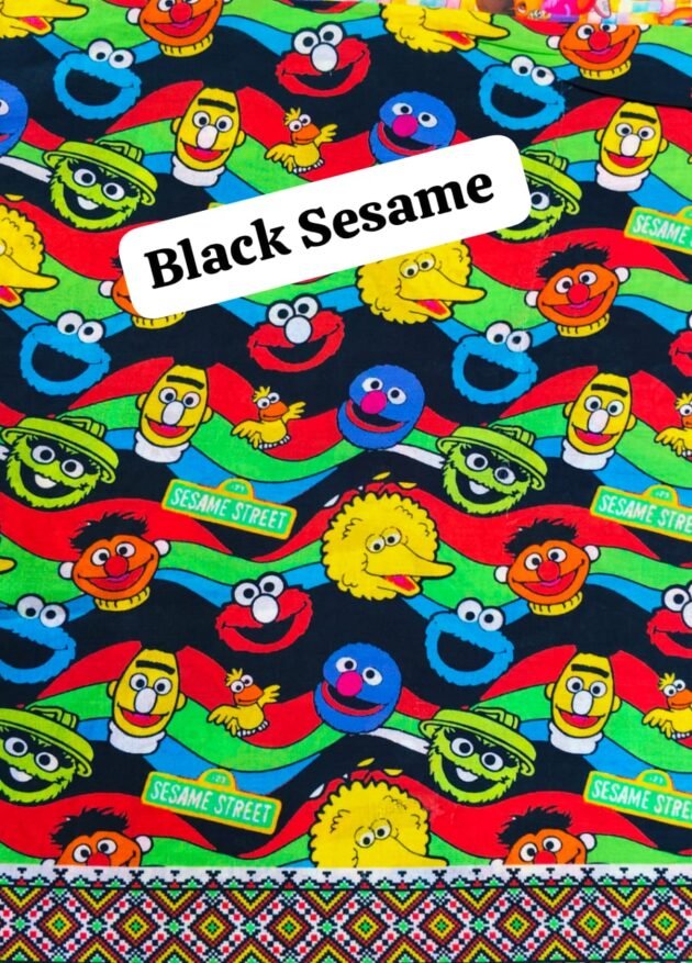 Brighten your sewing projects with our Black Sesame Funky Digital Lawn Fabric! This playful print brings the colorful world of Sesame Street to life, making it perfect for kids’ clothing and fun textile projects.