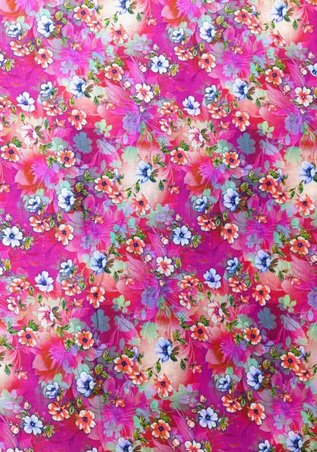 Blossom Bloom explodes with colorful floral vines and bright summer hues, printed over a lively pink lawn base. A perfect pick for festive and stylish seasonal outfits.