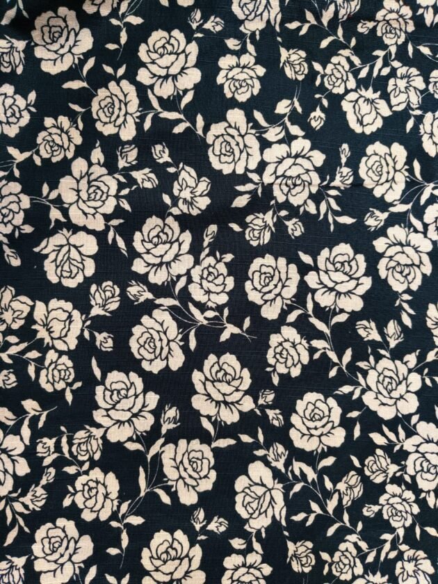Classic Noir – White Rose Print Khaddar (63″ Width)