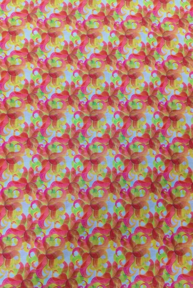 Funky Abstract Flame Lawn bursts with energy through vibrant orange, lime, and pink swirls. A bold statement print for fun, expressive wear.- Fabric: Cotton Lawn