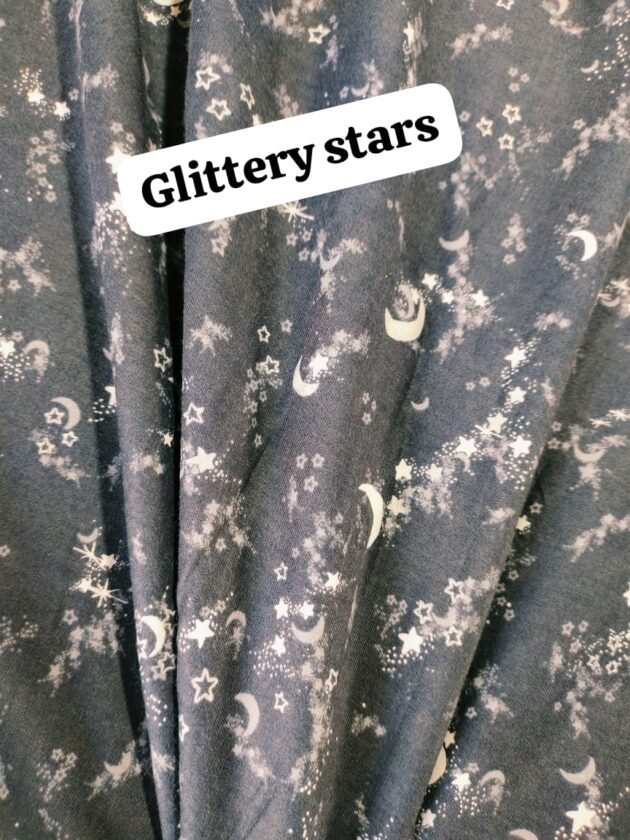 Glittery stars Felaline Funky fabric - H & A Boutiques presents the Felaline Funky collection — where bold meets beautiful. This collection is all about embracing vibrant colors, eclectic patterns, and fearless style. Designed for those who love to stand out and express their individuality, Felaline Funky brings an energetic twist to everyday fashion. With playful prints and eye-catching combinations, each piece is crafted to add a pop of personality to your wardrobe, making every outfit an unforgettable statement. Perfect for fashion-forward souls who aren’t afraid to bring a little funk into their day-to-day look!