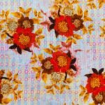 Golden Garden is a beautifully printed cotton fabric that combines rust-orange blossoms and beige florals with warm, golden foliage. The background features a subtle geometric design in pastels for a soft yet vibrant effect.- Fabric: Printed Khaddar