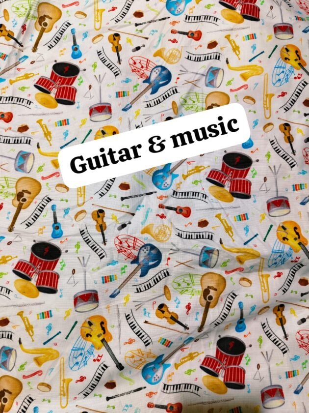 Guitar & music Funky Cotton - Get ready for winter with our premium cotton fabric, designed to bring warmth and comfort to your creations. This fabric is made from high-quality cotton, providing a natural, breathable, yet cozy touch that is perfect for winter wear or home decor. Whether you?e creating clothing, quilting, or crafting beautiful pieces for your home, this cotton fabric will help you achieve a warm, stylish result. Sold per yard with a width of 45 inches, this versatile fabric is ideal for a wide range of projects?rom winter shirts and dresses to soft blankets and pillows. The natural cotton weave offers durability along with a soft, comfortable feel against the skin, making it a perfect choice for chilly days. Embrace your creativity this winter and craft something truly unique with our 213% cotton fabric. Available by the yard, you can easily customize the length to suit your needs. Ideal for anyone looking to add warmth, softness, and natural beauty to their projects.