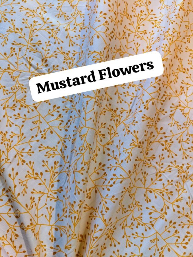 Mustard Flowers Cotton Fabric 45 " - Get ready for winter with our premium cotton fabric, designed to bring warmth and comfort to your creations. This fabric is made from high-quality cotton, providing a natural, breathable, yet cozy touch that is perfect for winter wear or home decor. Whether you?e creating clothing, quilting, or crafting beautiful pieces for your home, this cotton fabric will help you achieve a warm, stylish result. Sold per yard with a width of 45 inches, this versatile fabric is ideal for a wide range of projects?rom winter shirts and dresses to soft blankets and pillows. The natural cotton weave offers durability along with a soft, comfortable feel against the skin, making it a perfect choice for chilly days. Embrace your creativity this winter and craft something truly unique with our 213% cotton fabric. Available by the yard, you can easily customize the length to suit your needs. Ideal for anyone looking to add warmth, softness, and natural beauty to their projects.