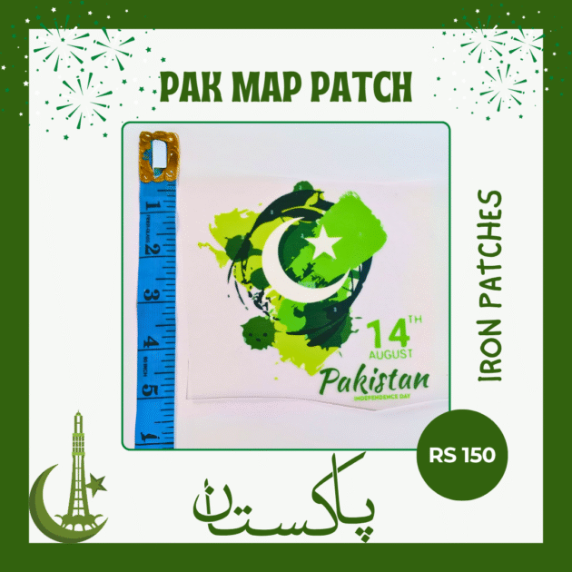 Show off your patriotism with our Pak Map Azadi Patch, a bold and vibrant iron-on patch perfect for Independence Day celebrations. Featuring Pakistan’s map filled with a crescent moon, star, and splashy green accents, this patch captures the true spirit of 14 August. Size: Approx. 3.5 inches Price: Rs. 150 📲 Order via WhatsApp 🔗 Facebook Page | Instagram Profile Buy online in Pakistan and wear your national pride proudly with HnA Boutique.Satisfied Customer!