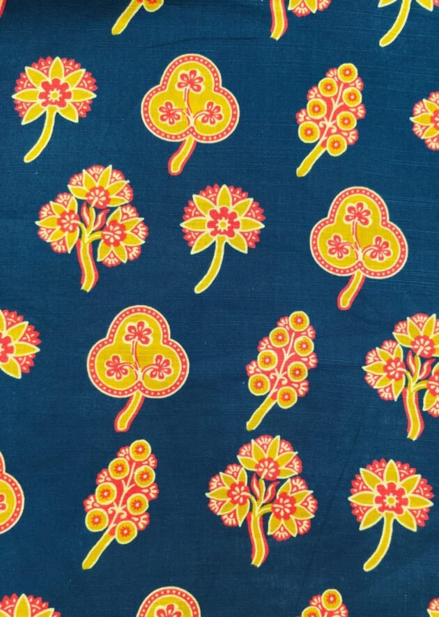 Retro Floral Trees – Printed Khaddar (63″ Width)