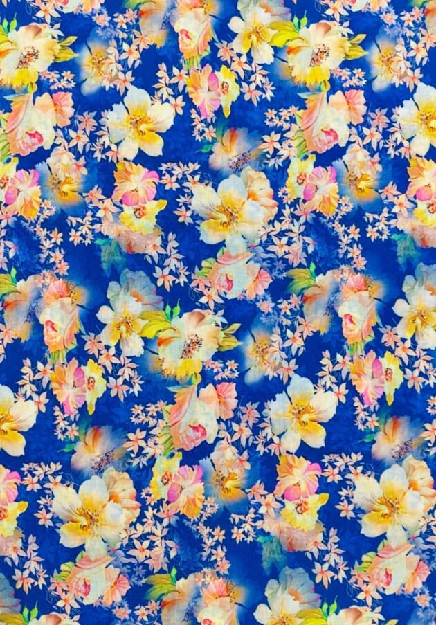 Royal Blue Bloom Burst Lawn – 63″ Width