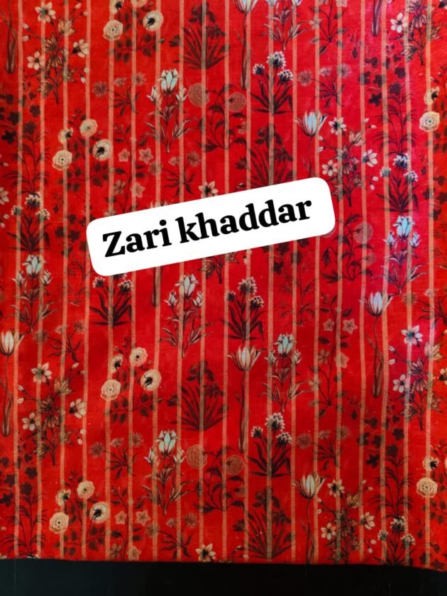 Red Daisy Bloom Zari Khaddar – 63″ Width