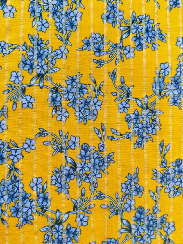 Yellow Blue Flora Zari Khaddar – 63″ Width