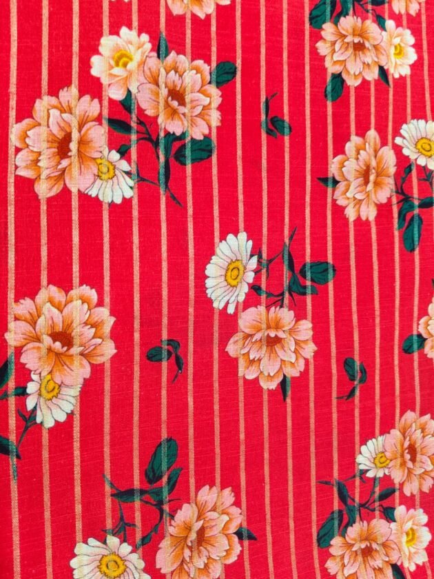 Red Daisy Bloom Zari Khaddar – 63″ Width