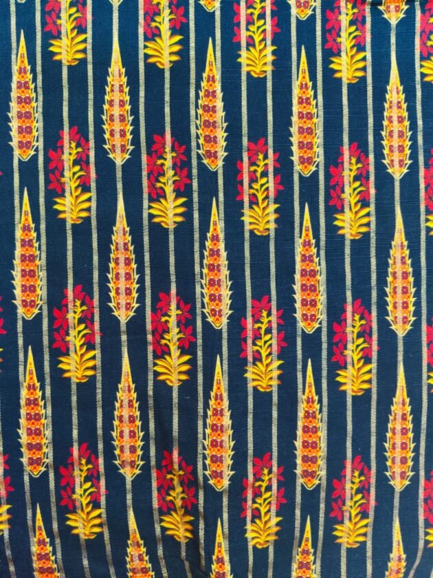 Yellow Blue Flora Zari Khaddar – 63″ Width